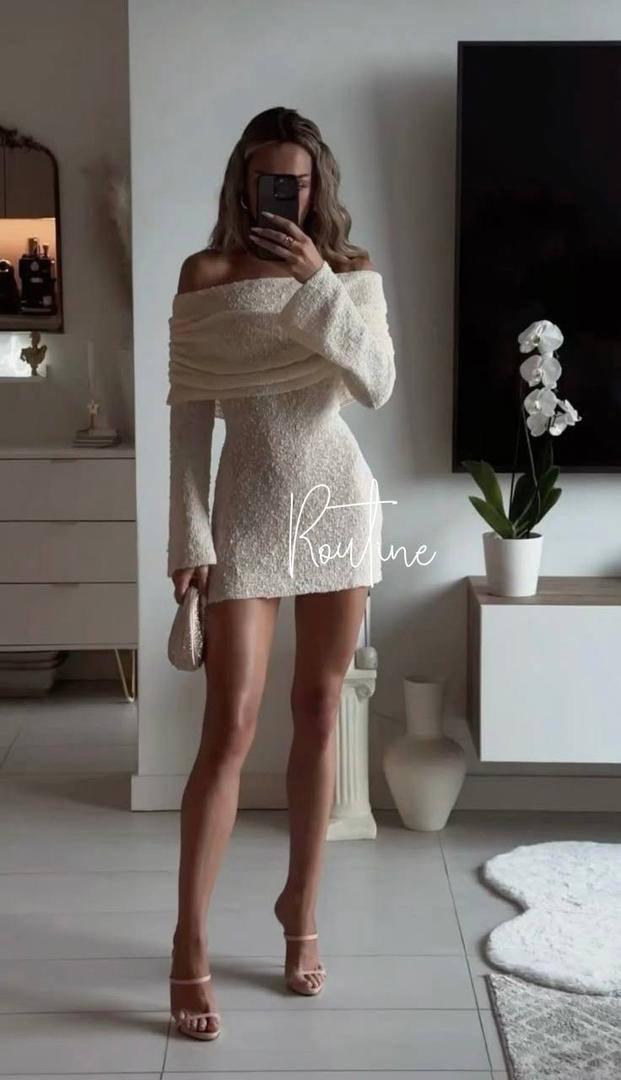 Платье из летнего фактурного трикотажа со спущенными плечами